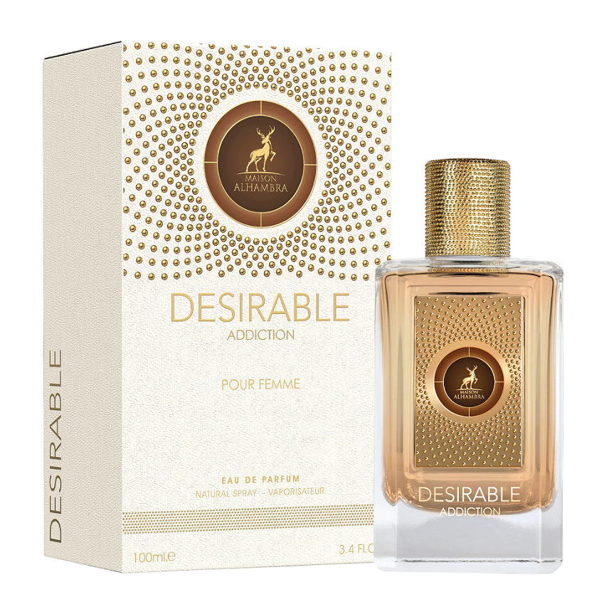 Το Desirable Addiction από τον Maison Alhambra είναι ένα σαγηνευτικό γκουρμέ άρωμα που εξισορροπεί την παιχνιδιάρικη γοητεία με το απολαυστικό βάθος. Ανοίγει με την λαμπερή λάμψη του κρυσταλλωμένου λεμονιού, μια πικάντικη και γλυκιά εισαγωγή που διεγείρει τις αισθήσεις.