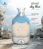 Το Velvet Sky Blue είναι ένα φρέσκο και κομψό άρωμα, που θυμίζει την ηρεμία ενός καθαρού ουρανού. Ανοίγει με φωτεινές και φρέσκες νότες κορυφής από λεμόνι Σικελίας, ζουμερό μήλο, κέδρο και ντελικάτο λουλούδι καμπανούλας, δημιουργώντας μια ζωντανή και αναζωογονητική εισαγωγή.