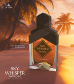 Το Sky Whisper Paradise είναι ένα πλούσιο και μαγευτικό άρωμα που αιχμαλωτίζει την τέλεια ισορροπία ζεστασιάς, γλυκύτητας και κομψότητας. Το άρωμα ανοίγει με πλούσιες και δυναμικές νότες κορυφής από κονιάκ, λικέρ και βατόμουρο, προσφέροντας μια τολμηρή, φρουτώδη και ελαφρώς αλκοολούχα εισαγωγή.