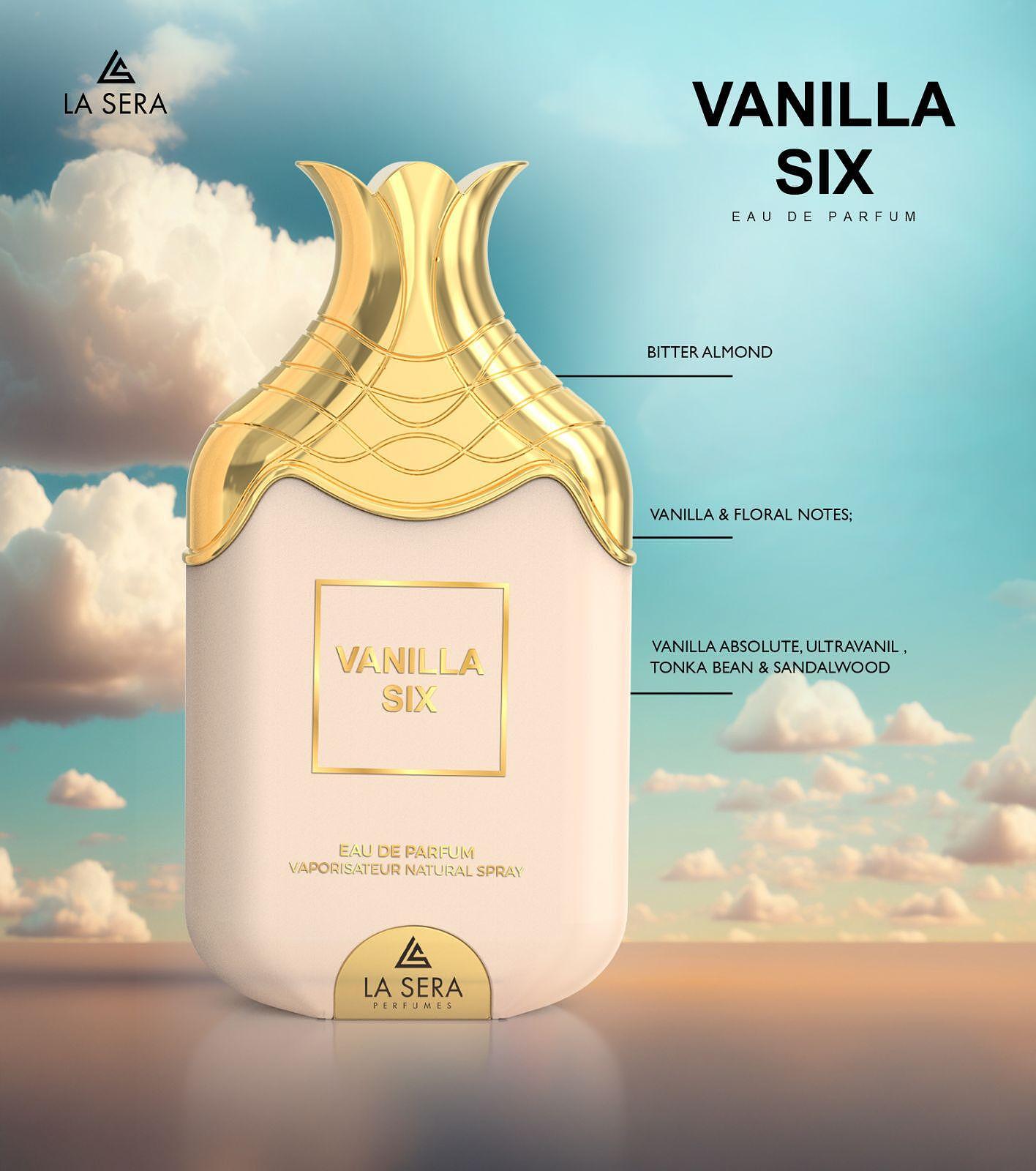 Το Vanilla Six είναι ένα πλούσιο, σαγηνευτικό και εξαιρετικά κρεμώδες άρωμα βανίλιας, δημιουργημένο για όσους αγαπούν τα βαθιά και αγκαλιαστικά γκουρμέ αρώματα. Ανοίγει με μια εντυπωσιακή νότα πικραμύγδαλου, προσθέτοντας μια απαλή νότα ξηρών καρπών, η οποία θέτει το σκηνικό για την πολυτελή καρδιά του. Η καρδιά αποκαλύπτει ένα ζεστό μείγμα βανίλιας και απαλών λουλουδάτων, δημιουργώντας μια βελούδινη γλυκύτητα που είναι ταυτόχρονα καταπραϋντική και πολυτελής.